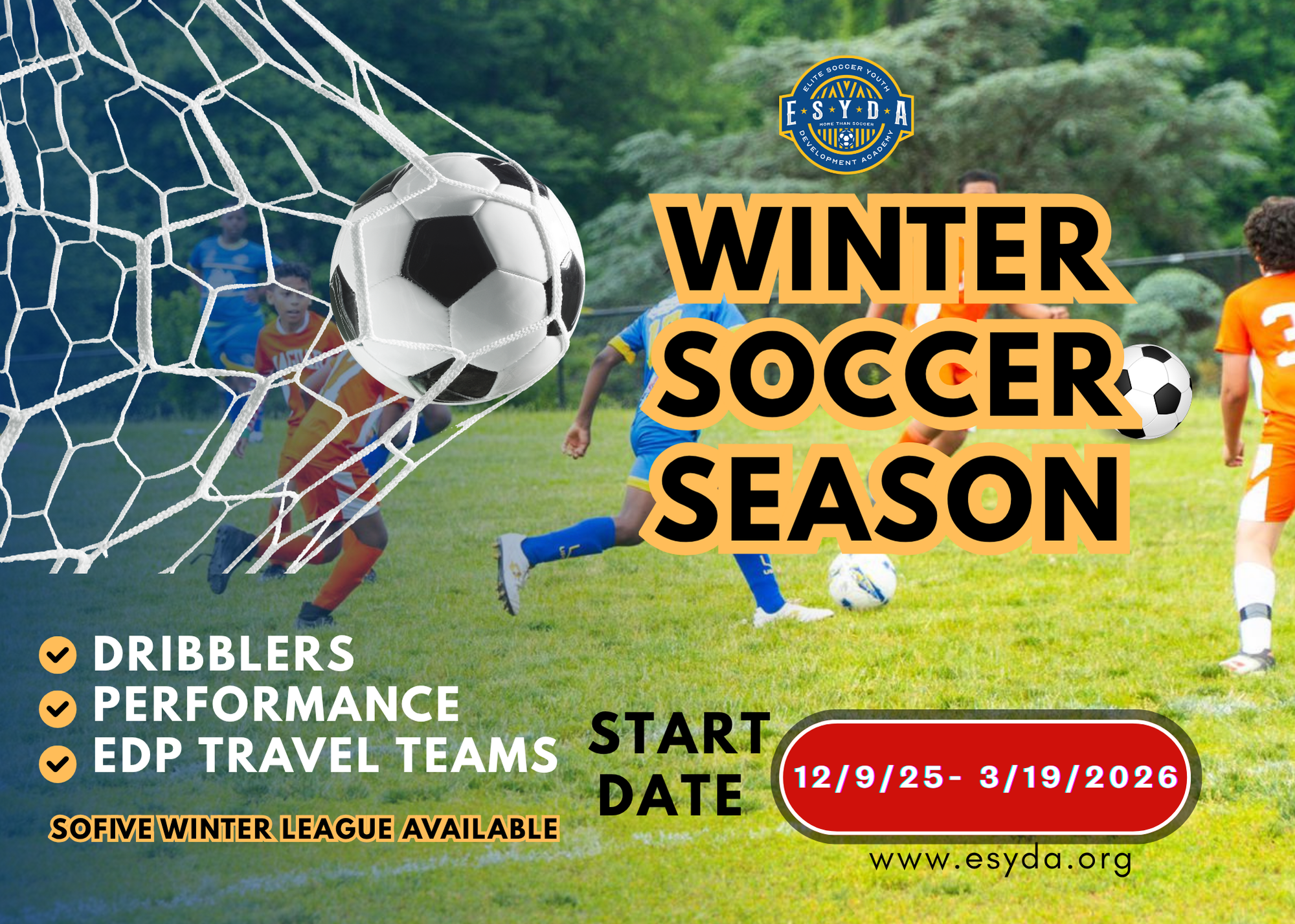 Soccer enthusiasts, get ready! The ESYDA Winter Soccer Season is set to kick off on December 19th, promising an exciting stretch of action-packed matches until March 6th. Whether you’re a player eager to showcase your skills or a fan looking forward to high-energy games, this season is shaping up to be one you won’t want to miss.